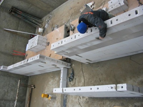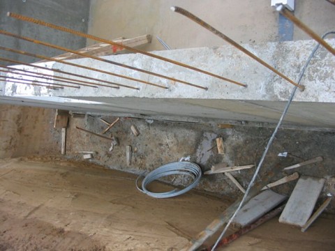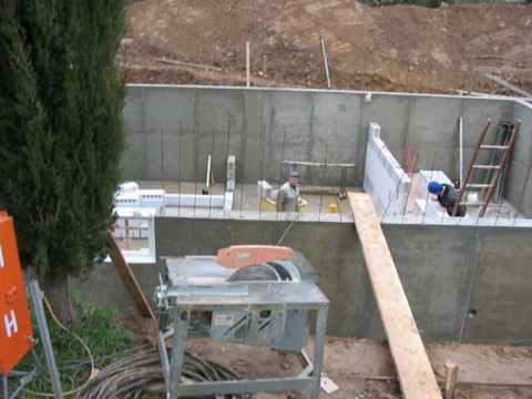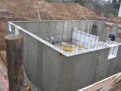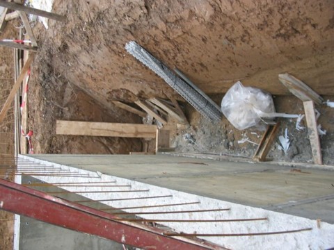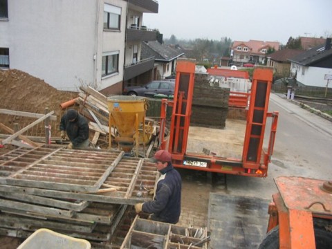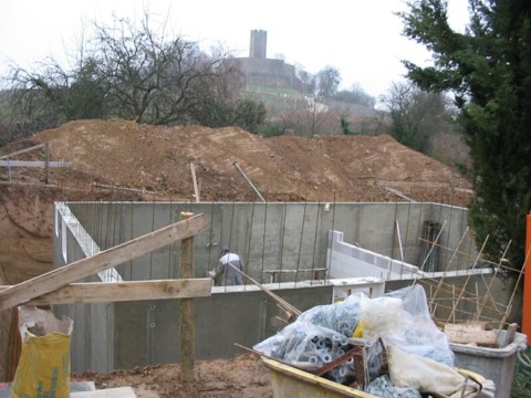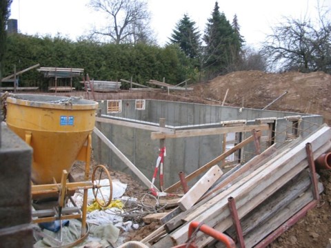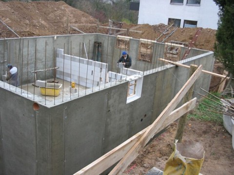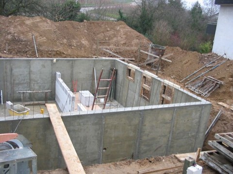 ![]() Die Kellerwände, schon von der Verschalung befreit |