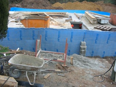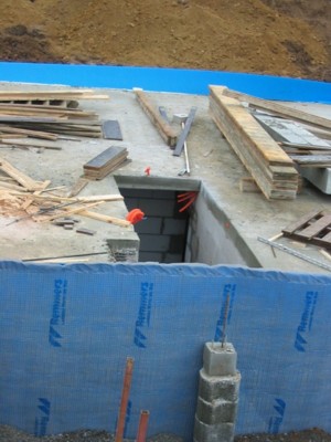 ![]() Fundamente für die Veranda und ein schöner Blick auf das blaue Verhüterli. Man sieht auch gut daß vorne bereits ein Teil aufgefüllt wurde. |