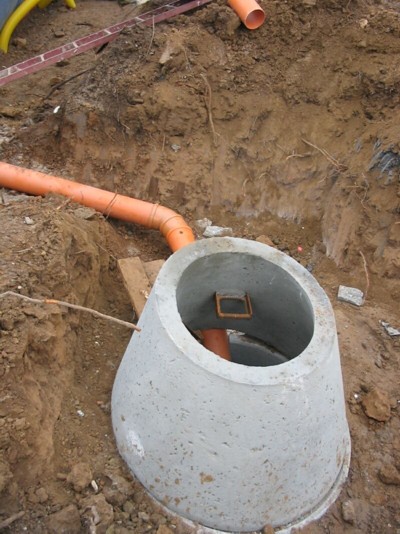 ![]() Aus südwestlicher Richtung gesehen der Revisionsschacht fürs Abwasser. Er liegt sehr tief. |